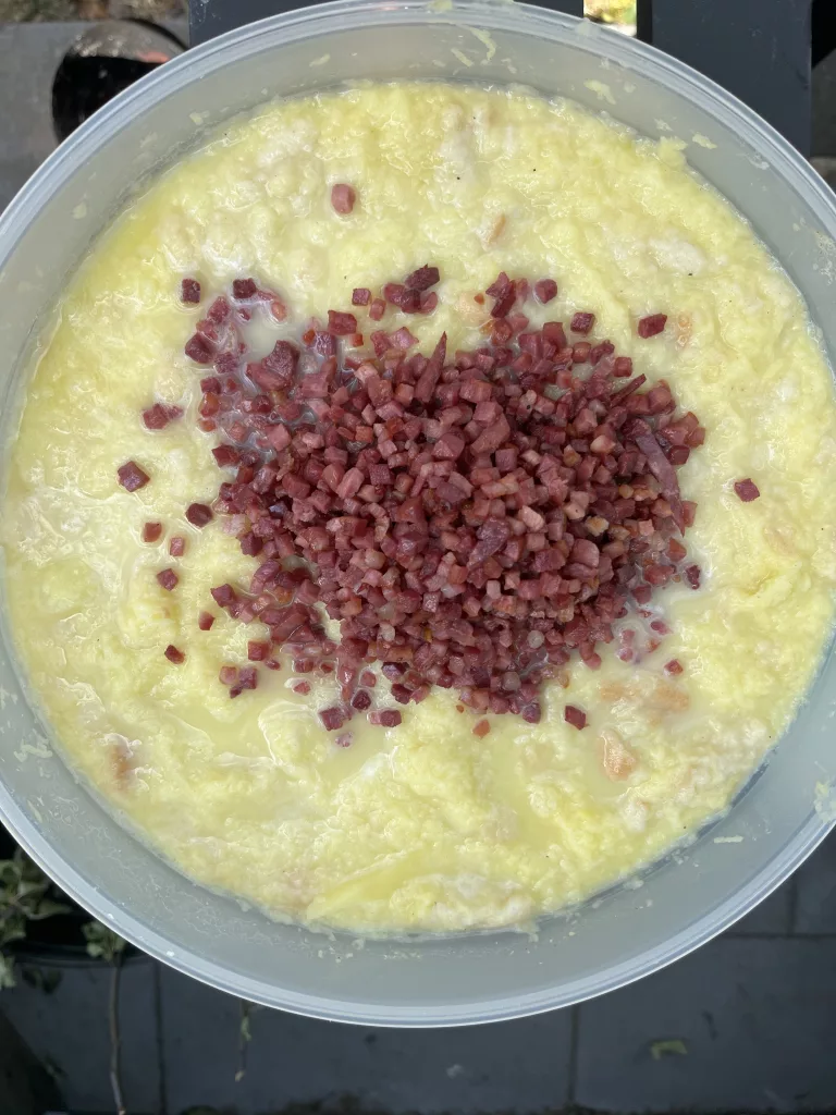 Eine rheinländische Delikatesse! Das Kartoffelgericht mit Speck und Zwiebeln ist wie geschaffen für den Dutch Oven.